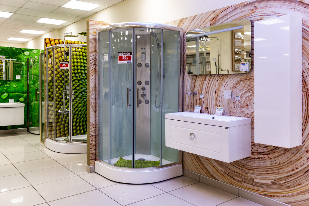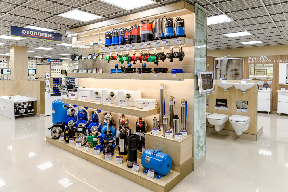 Раздумывая о площади зала, ориентируйтесь по габаритам ваших сантехнических изделий: покупатель должен видеть имеющуюся продукцию, оценить ее визуально, «покрутить» в руках. Для крупного магазина потребуется около 300 м², для среднего – 150 м², для малого – от 50 м². Обязательно определитесь с расположением склада: будет это отдельное помещение на территории магазина или же за его пределами (к примеру, арендованная база).