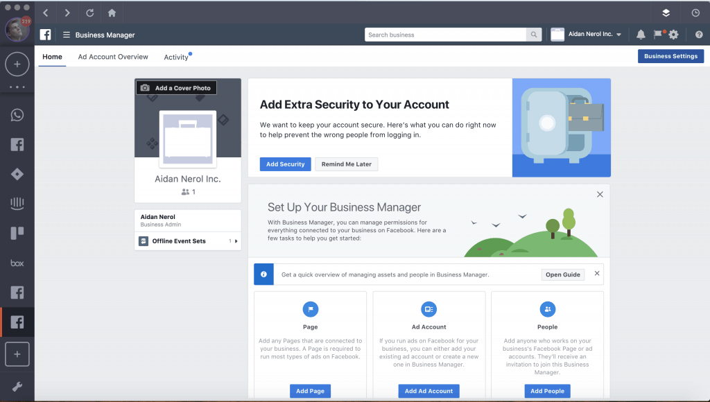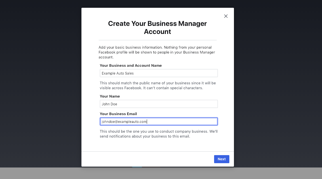 (Чтобы создать учетную запись Facebook Business Manager, сначала необходимо иметь личную учетную запись Facebook и бизнес-страницу Facebook).