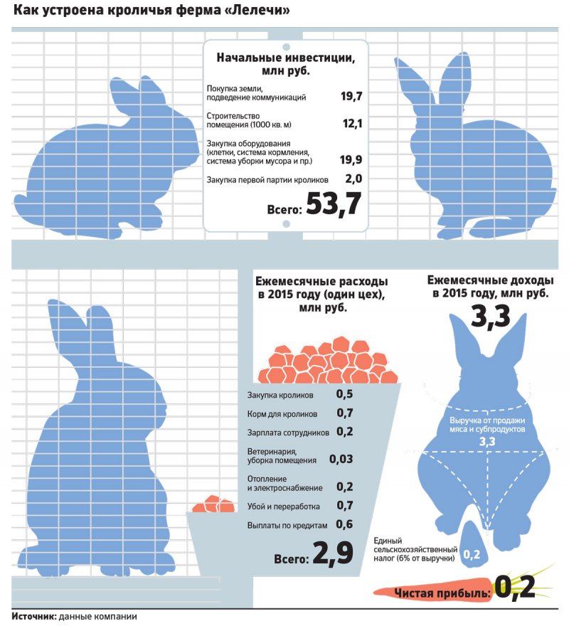 С практической стороны заниматься кролиководством удобно тем, что оно позволяет получать прибыль при различном объеме поголовья. Так, например, вы можете использовать ферму в качестве дополнительного дохода, имея всего 3-4 самок и одного самца для воспроизводства особей на продажу. В этом случае вы сможете получать от реализации до 3000$ выручки в год. Если же вы готовы посвятить предприятию все свободное время, можно расширить ферму до 10-20 самок и обеспечить до 15000$ ежегодного дохода.