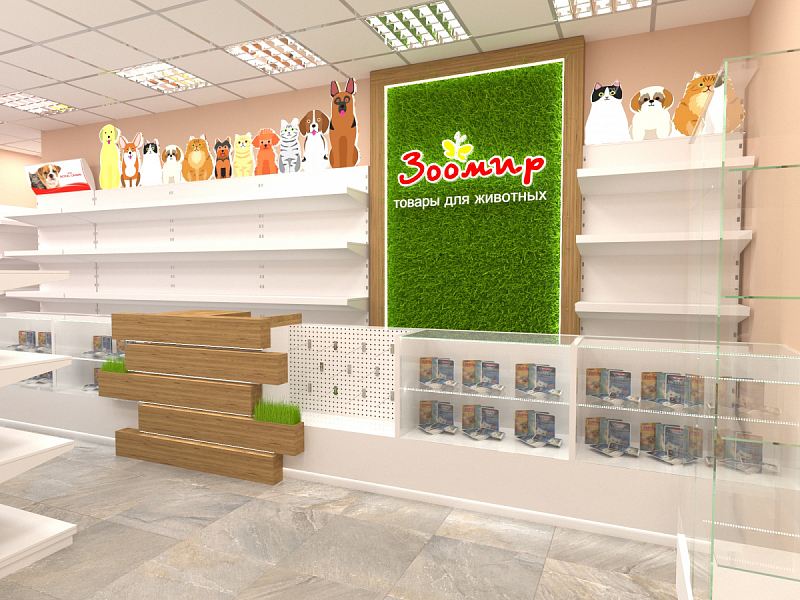 В точках, реализующих товары для животных, редко встретишь оригинальные интерьерные концепции, а на этом можно сыграть в целях привлечения посетителей.