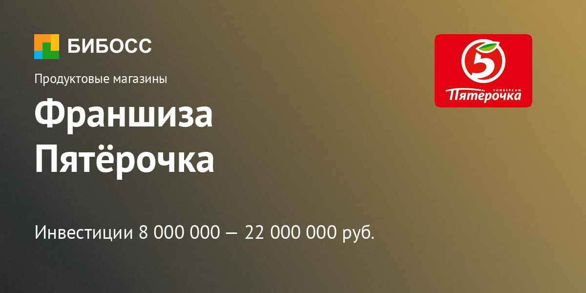 Франшиза Пятерочки предлагается предпринимателям, имеющим в собственности или в долгосрочной аренде площади, и частным инвесторам, желающим вложить деньги в доходные розничные проекты. Открытие магазинов по