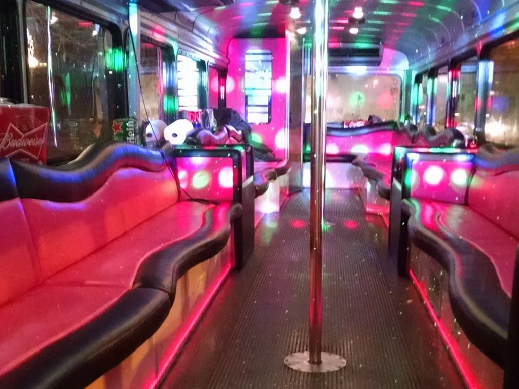 Внутри Вас встретит различное развлекательное оборудование – личный бар, шест для немыслимых танцев, бешенная светомузыка, громкое караоке, диджейский пульт, огромные мониторы и многое другое. Зачастую, по средине автобуса располагается большая танцплощадка.