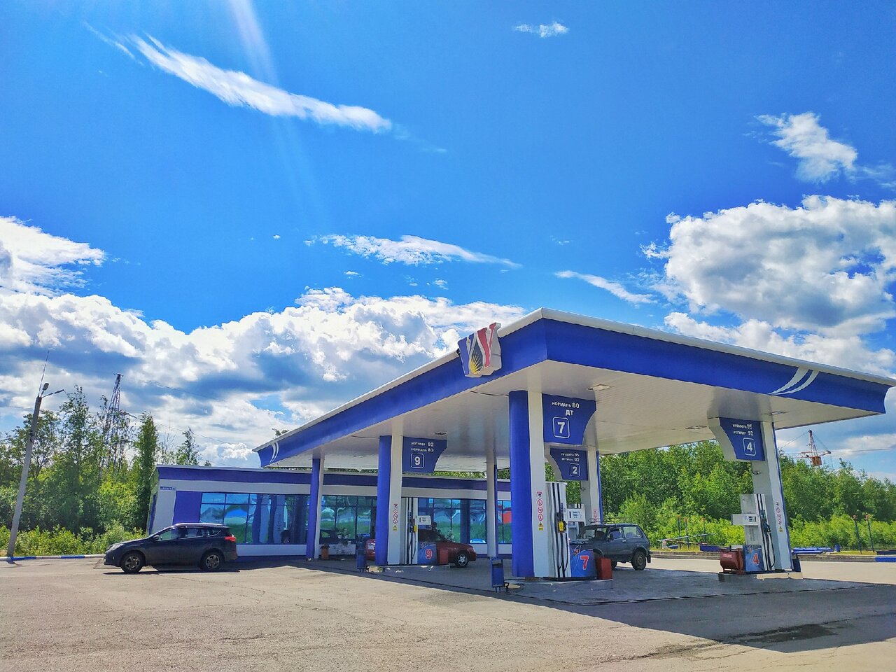 они визуально выделяются высоким ярким щитом с маркой АЗС и крупными цифрами цен на