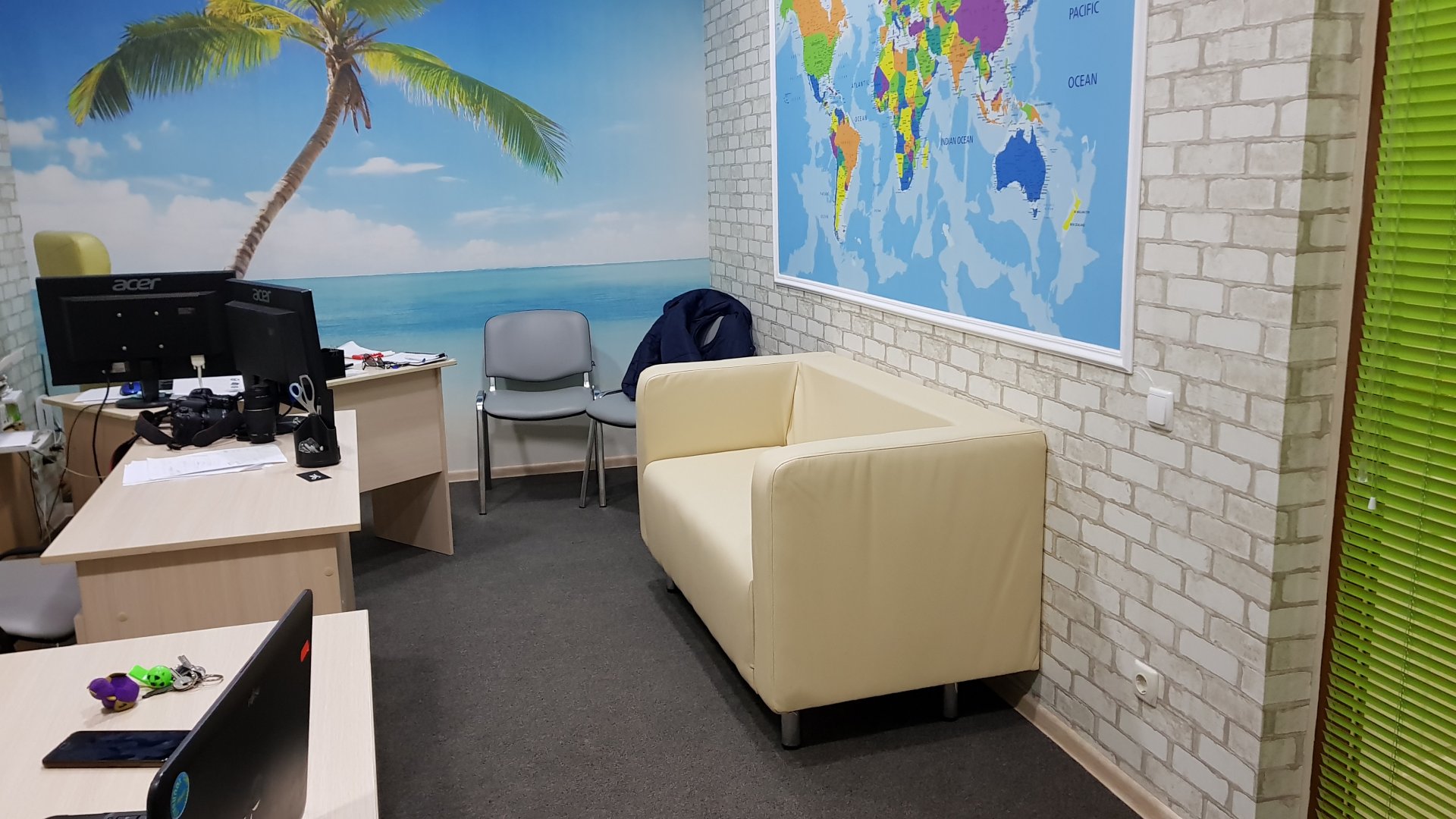 Помещение для турфирмы выбирают по числу сотрудников. Для компании из одного-двух человек достаточно 20 кв метров, на каждого следующего сотрудника потребуется еще по 5 кв метров.У владельца туристической компании есть два варианта: арендовать дорогое помещение в центре или открыть офис на периферии, но зато недорого. Например, в Казани аренда офиса на периферии стоит от 350 ₽ за кв метр, в центре — от 650 ₽ за кв метр. У каждого варианта свои плюсы и минусы.