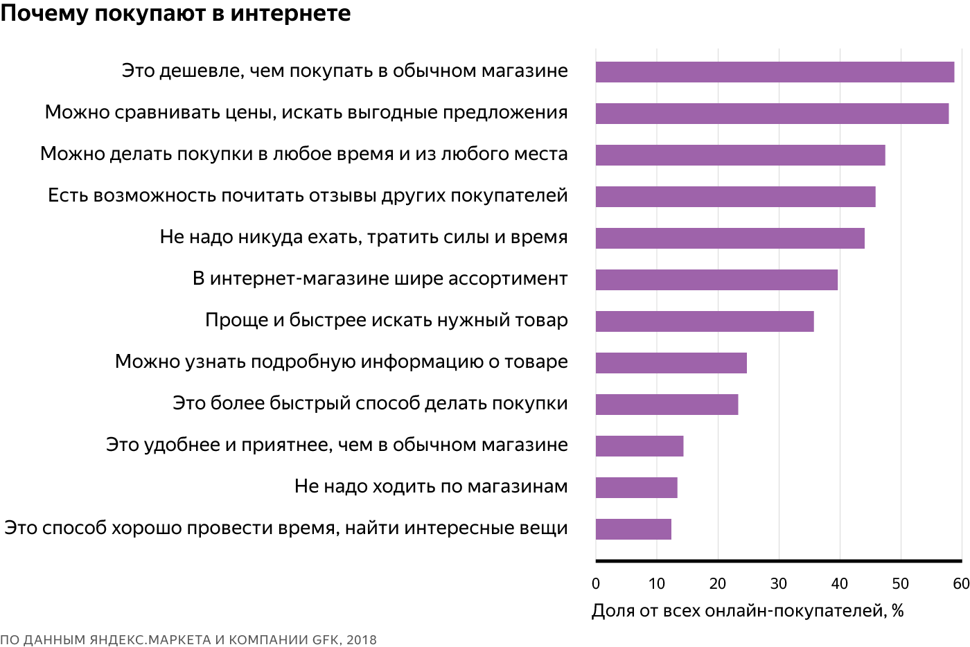 Отмечается, что, несмотря на стремительно развивающуюся популярность онлайн-шопинга, 22% россиян все еще предпочитают делать покупки оффлайн. Большинство из тех, кому по душе покупать товары в интернете, делают это в популярных интернет-магазинах и на маркетплейсах — так ответили 69% респондентов. Еще 20% опрошенных отметили, что совершают покупки на сервисах объявлений. С недавнего времени стало возможным приобретать товары и через социальные сети, однако всего 9,5% респондентов заявили, что используют эту площадку.