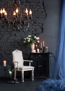 Для создания романтики не нужно украшать помещения большим количеством деталей, достаточно пары тщательно подобранных элементов, которые помогут создать «нужное» настроение. Этим романтические интерьеры и привлекательны: их легко «собрать» и так же просто переделать. К примеру, для легкой композиции в стиле прованс подбирают изящный столик из дерева с резьбой, окрашенный в белый цвет.