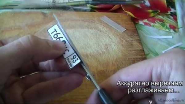 Наклейте скотч на номерок, а все лишнее обрежьте по краям.