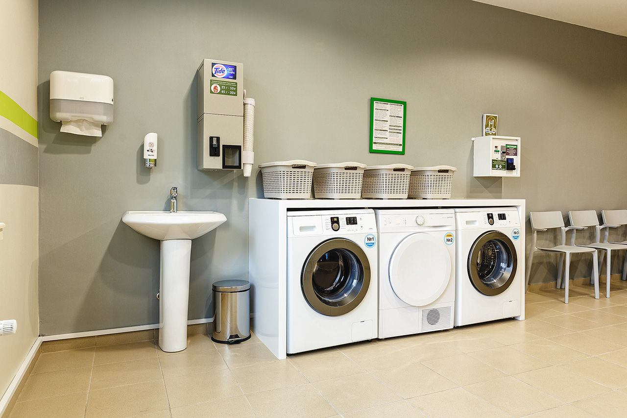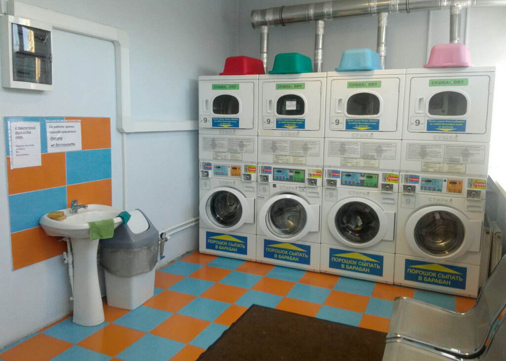 Для установки прачечной самообслуживания достаточно небольшой комнаты, например можно арендовать нежилое помещение на первом этаже общежития. Для стиральных машин потребуется обязательное наличие водопровода, канализации и электричества.