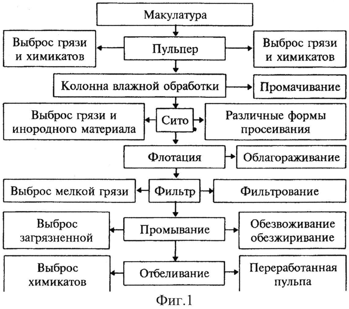 На предприятиях переработка бумажных отходов осуществляется в несколько этапов, назначение и количество которых зависит от типа вторсырья и от дальнейшего применения массы. Условно выделяют два этапа.