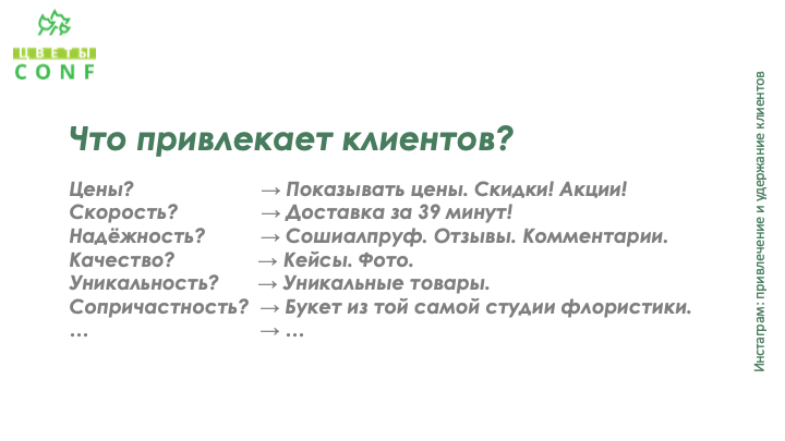 Использование историй в социальных сетях может быть очень эффективным способом привлечь клиентов. Исследование Facebook показывает, что человеческое общение является ключом к успеху в маркетинге, и личные истории сделают именно это. Если у вас есть вдохновляющая история о том, как начинался или развивался ваш цветочный бизнес, поделитесь ею, это может быть полезно для вашей компании. Это делает вас узнаваемым и более доступным как лидера бренда. Чем больше людей чувствуют себя связанными с вами и вашим брендом, тем больше вероятность того, что они совершат покупку у вас, особенно лично на местных мероприятиях.
