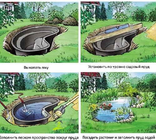 Комплекс строительных работ при устройстве водоёма своими руками предполагает следующие этапы: