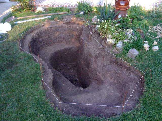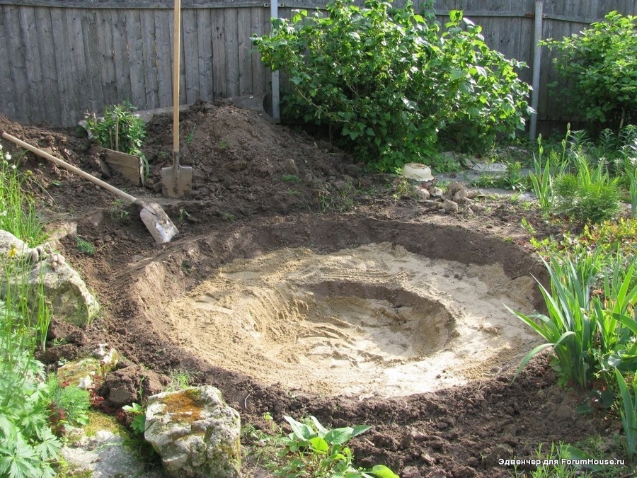- Самая сложная часть прудового строительства — рытье ямы. Хорошим предложением для максимальной глубины является длина руки, чтобы вы могли достать все, что случайно упало в пруд.