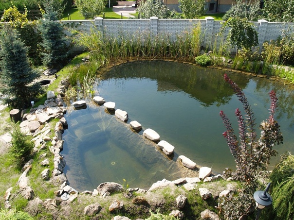 - Находиться возле забора или сарая поможет защитить пруд от сильнейших зимних морозов или летней жары. Но не полная тень — ему также понадобится солнечный свет в течение некоторого времени, чтобы растения росли, а существа жили среди них.