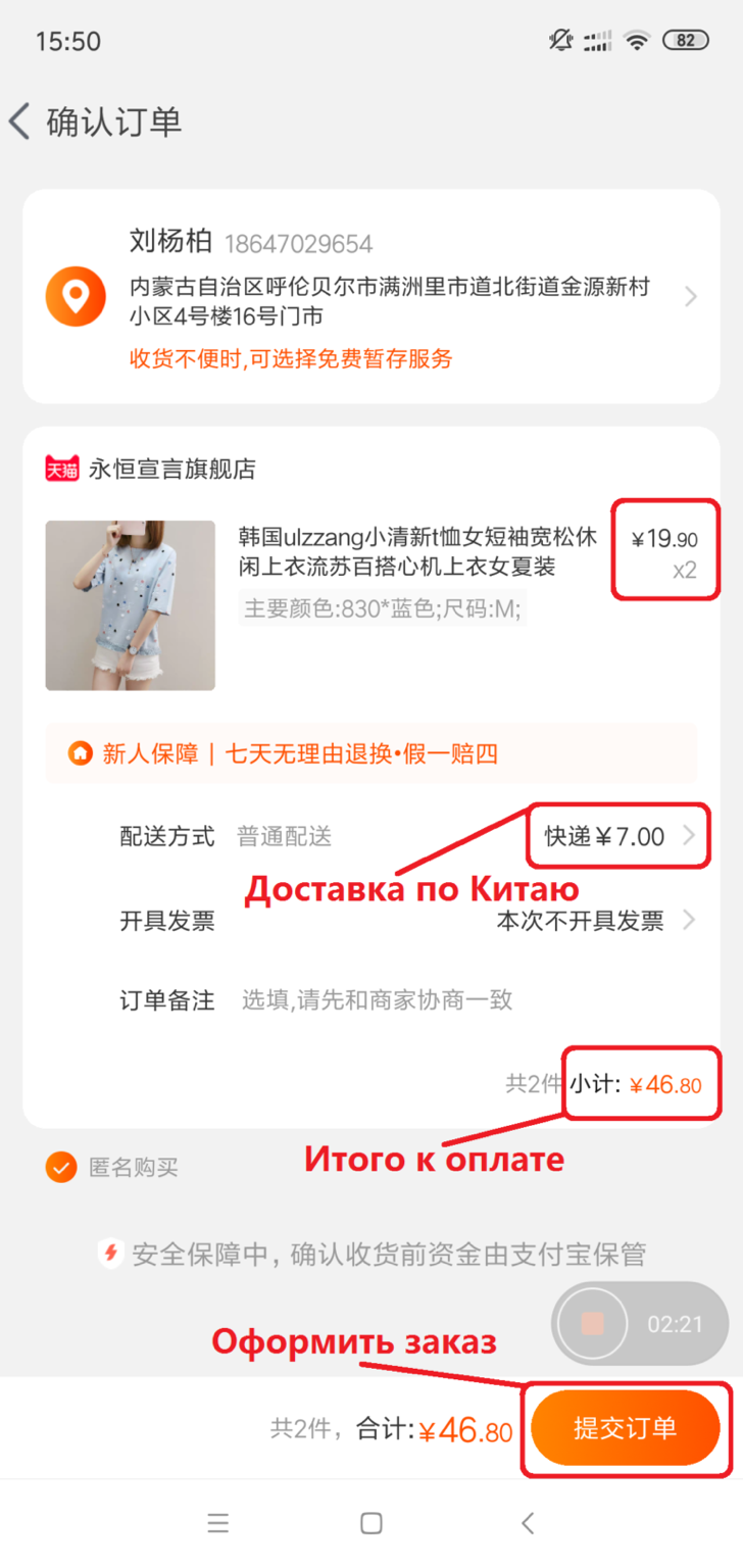 ШАГ 4: Разместите заказ на Taobao и дождитесь доставки товара продавцом.