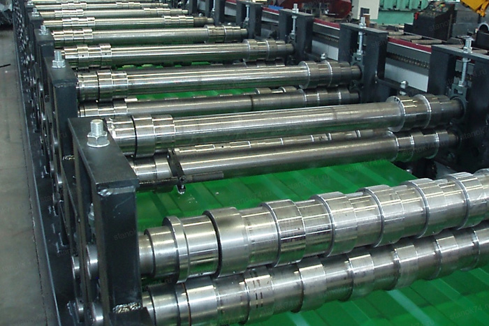 Прокатный стол. Данная часть автоматической линии предназначена для формирования определенной фактуры у металла. Само устройство конструктивно сложное и состоит из нескольких секционных отделений. После прохождения через линию металл выходит в виде гофры, которую нарезают на отдельные пластины.