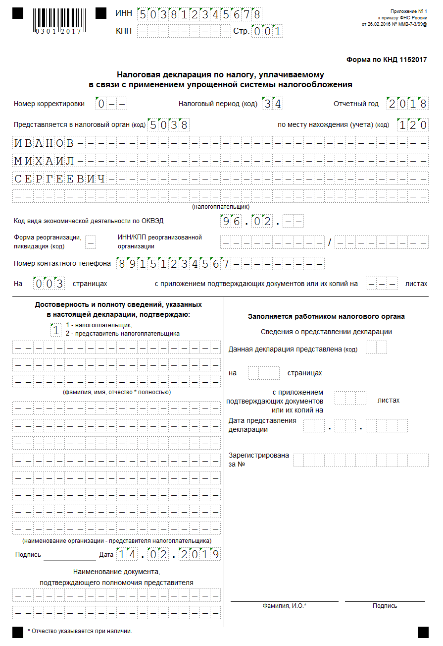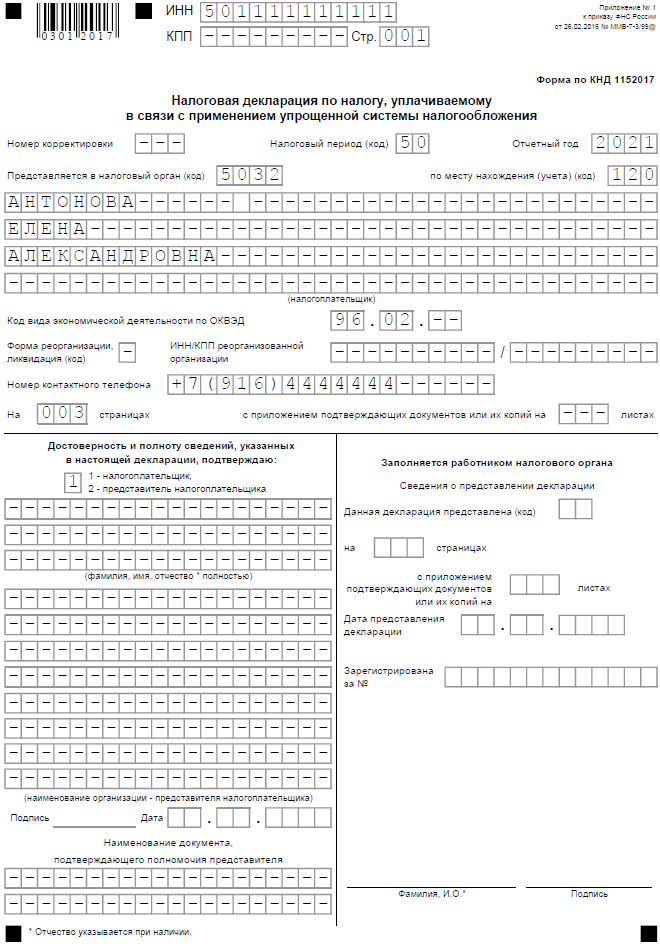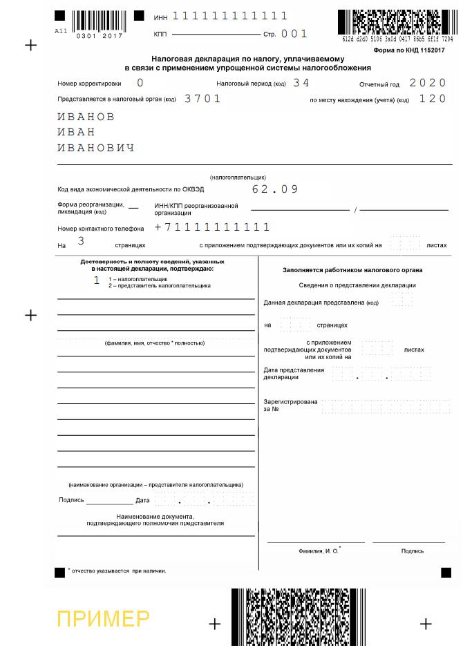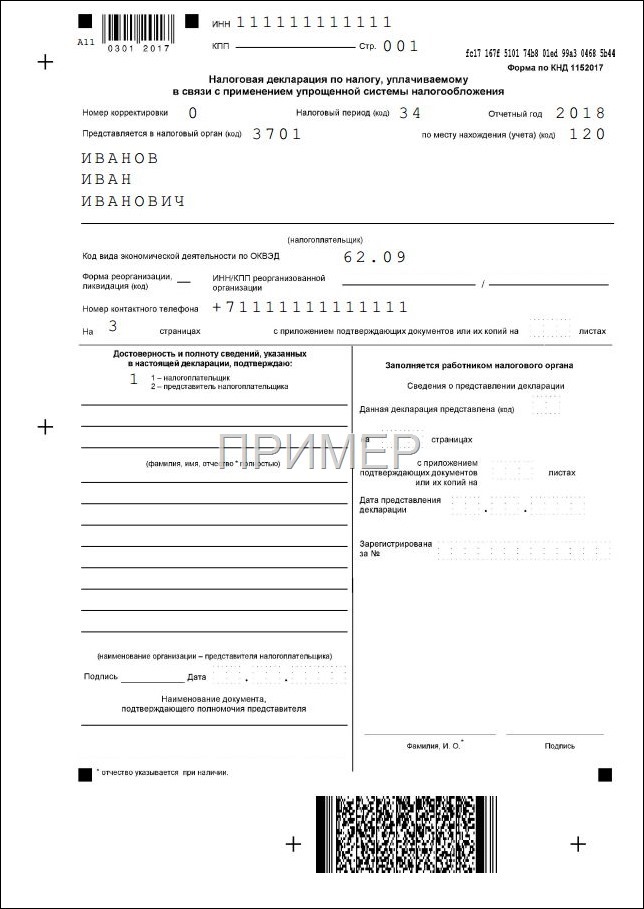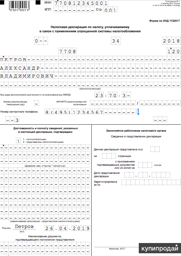 Пример заполнения ОКВЭД в декларации по УСН «Доходы»