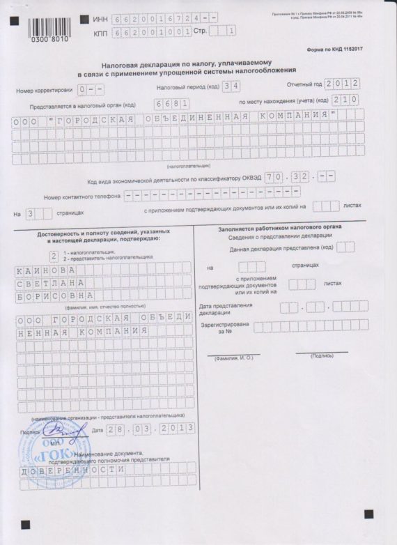 Отчетность сдается на специальном бланке — форма КНД 1152017.