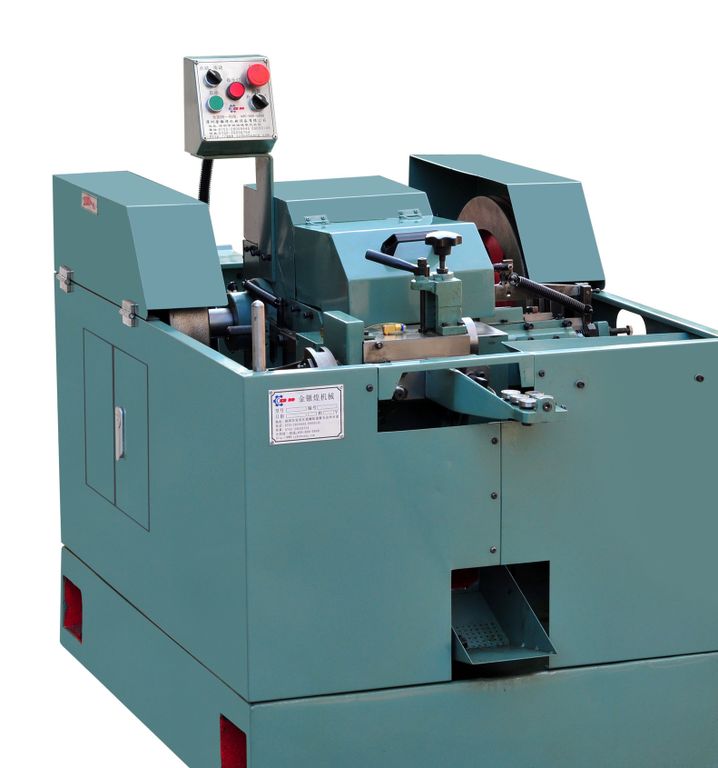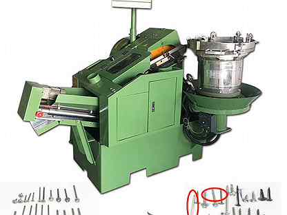 Более дорогие станки позволяют расширить ассортимент до производства шурупов, винтов и других типов метизов. Производительность станков, в среднем, находится в диапазоне 40…250 шт/мин. Естественно, цены между простыми моделями и высокопроизводительными отличаются в несколько раз. Отдельные модели дополнительно могут формировать сверло на носике самореза. - Резьбонакатной станок. Обеспечивает накатку резьбы посредством плоской сменной плашки. Имеет возможность, в зависимости от модели, варьировать шаг резьбы.