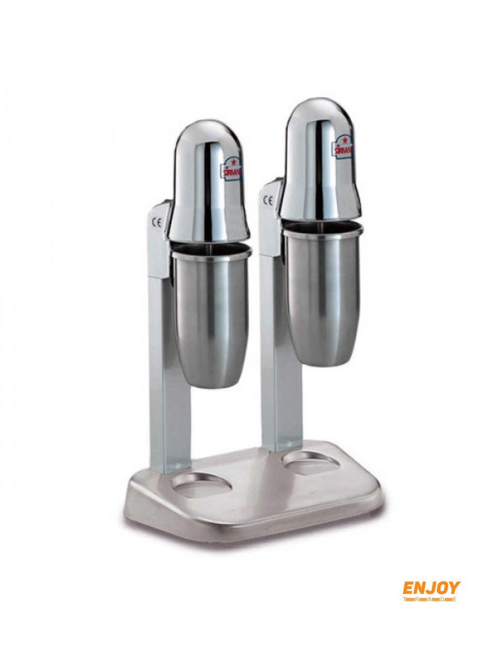 Аппарат производства Китай с одиночным стаканом. Аппарат отлично справляется с приготовлением молочных коктейлей с ледяной крошкой и может похвастаться скоростью вращения 16 тыс. оборотов в минуту. Основание и корпусная часть выполнены из алюминия, а стойка и стакан из нержавеющего сплава. Безопасная система включается только при вставленном стаканчике, объём которого 800мл.