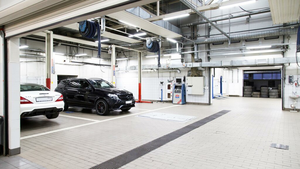 Если в автосервисе нет смотровой ямы, тогда большое внимание необходимо уделить полу. Во-первых, на него будут постоянно оказываться большие нагрузки, во-вторых, если пол будет неровным, возможна деформация несущих конструкций подъемника. Смотровая яма обязательно должна быть отделана кафелем, стены и пол также покрыты кафелем, либо материалами, устойчивыми к воздействию влаги, масел и бензина. Окрашивать стены можно только масляной краской.