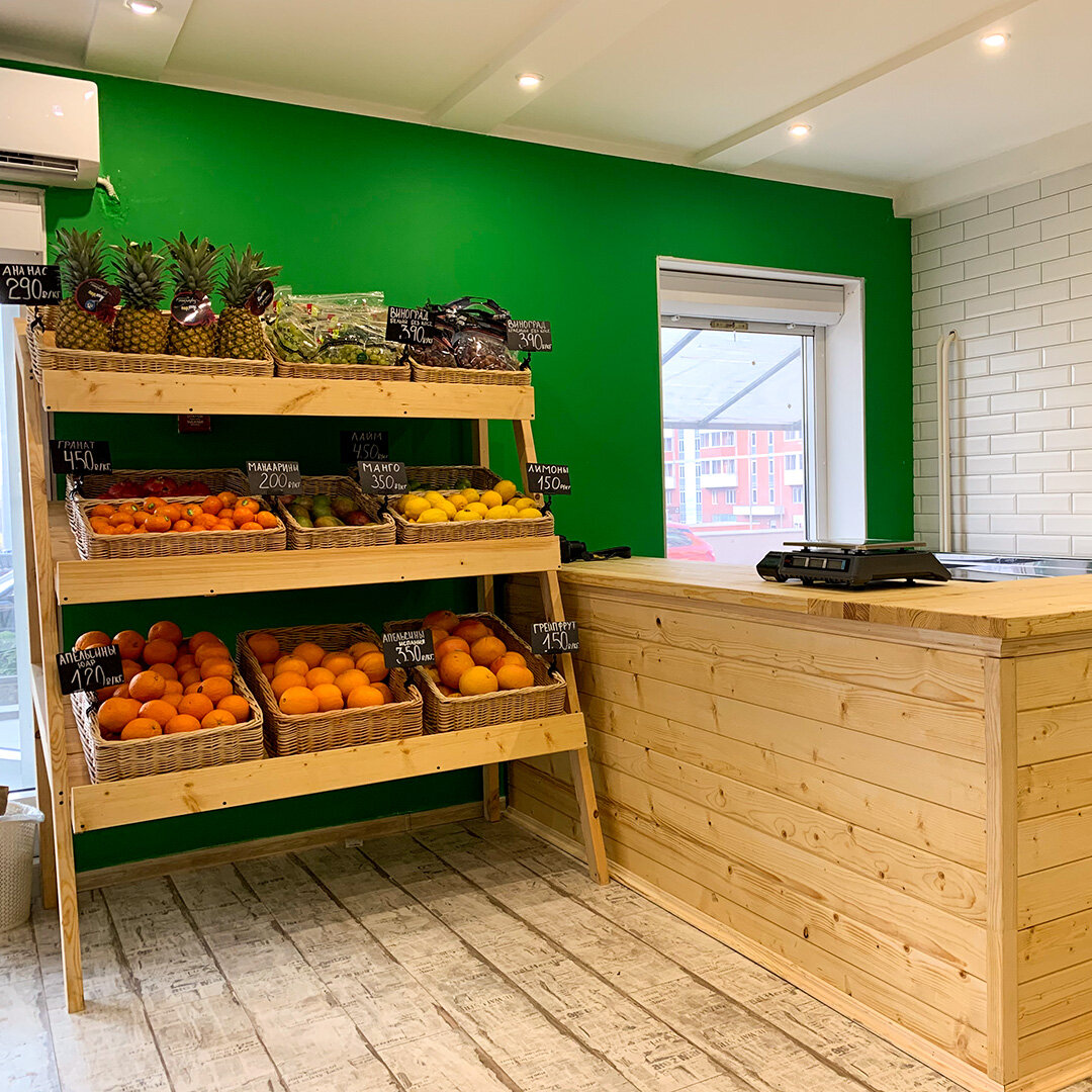 - полки, на которых вам нужно будет красиво презентовать фрукты;
