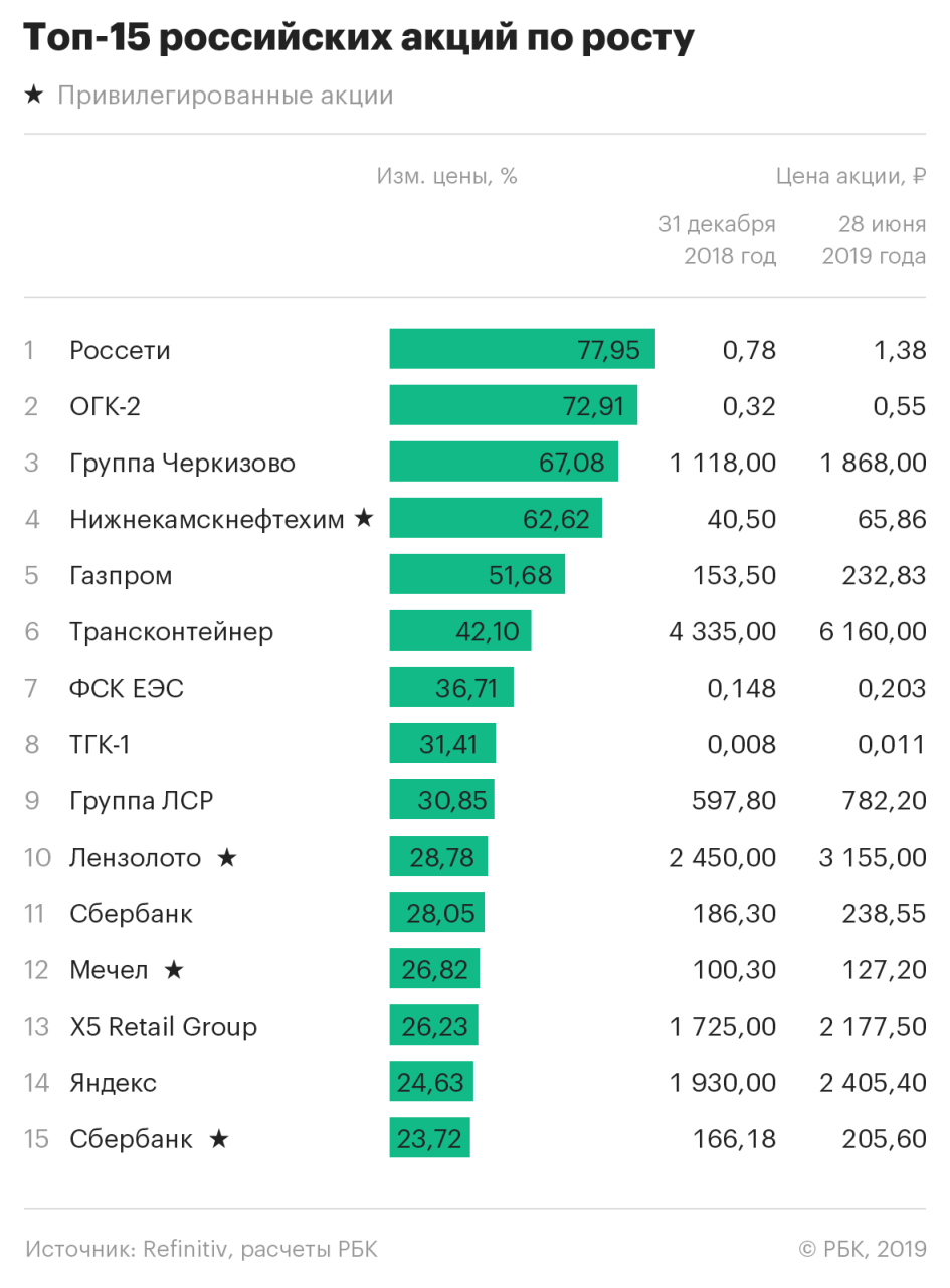 Рейтинг РБК Quote: самые подорожавшие акции первой половины 2019 года :: Новости :: РБК Quote