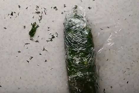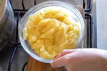 4. Подготовьте контейнер и выложите туда пищевую пленку. Затем переложите массу в него и придайте форму. Когда в форму уложили, закройте сверху краями пищевой пленки и поставьте в холодное место до остывания.
