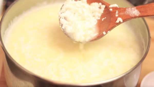 После добавления лимонного сока сырная масса начинает расслаиваться.