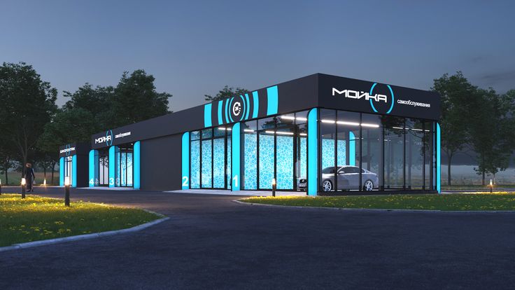 - Уникальный дизайн. В проект автомойки самообслуживания на 6 постов заложены навесы с фирменным, узнаваемым оформлением. Бренд пользуется доверием, поэтому объект будет привлекать внимание широкого круга потенциальных клиентов.