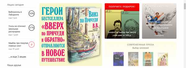 Например, так сделал интернет-магазин «Лабиринт». На главном экране размещен тематический баннер с акцией «Библионочь», который разработан дизайнерами с учетом общей концепции и дизайна сайта: