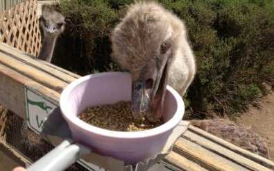 Малышам досыпают камешки, учитывая отсутствие у них зубов. Страусята гуляют 2 раза в день по 30 минут. Во время кормления не следует забывать о соблюдении питьевого режима.