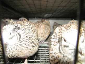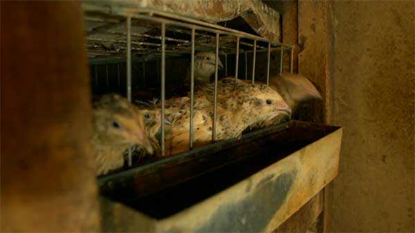 Примечание: Перепелок, предназначенных для откорма, держат в небольших клетках, которые ограничивают движения птиц, замедляют их половое созревание и ускоряют набор веса.