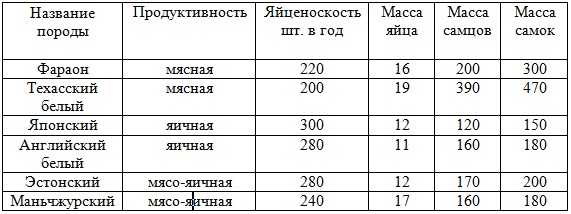 Разведение этих птиц в домашних условиях для начинающих в первую очередь требует правильного подбора породы. Этих птиц выращивают как для получения яиц, так и мясных тушек, поэтому и породы принято разделять по направлениям продуктивности.