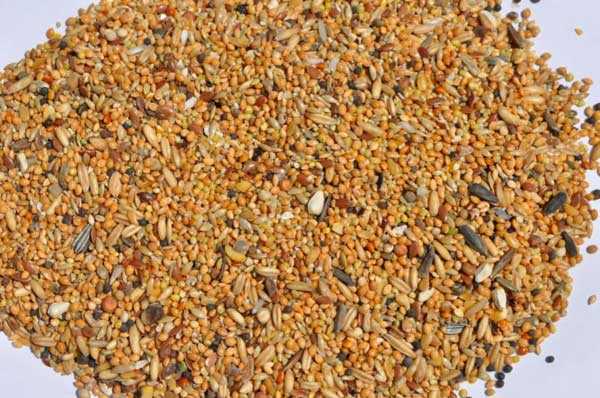 - Сухой. Его насыпать в кормушку можно на любой срок, хранится он в пакетах долгое время, не меняя полезных свойств.
