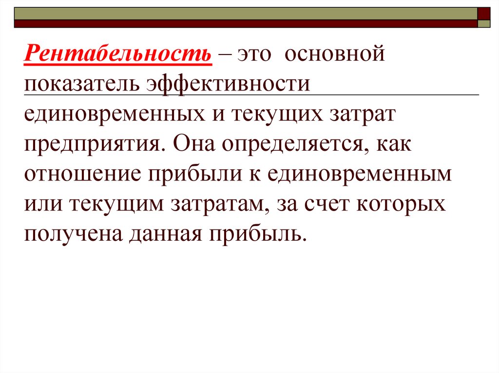 Понятие рентабельности продукцииРентабельность продукции — это коэффициент, который отражает соотношение между полученной прибылью и затратами на производство продукции.