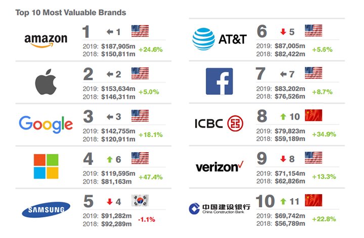 - Общая стоимость брендов рейтинга составила $2,54 трлн, что на 200 млрд больше цифры в 2019 году.