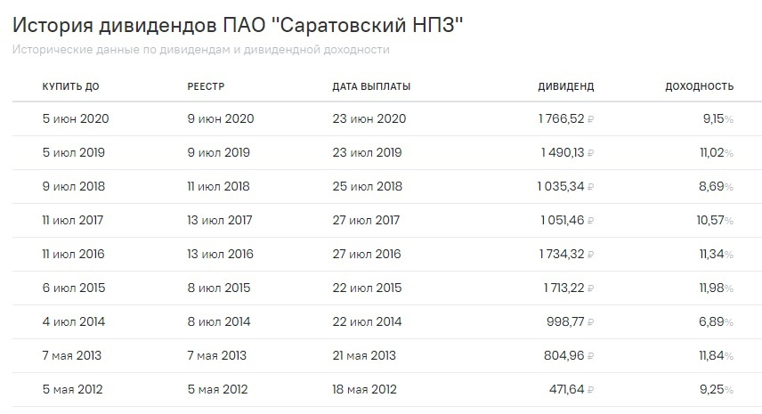 Календарь дивидендных выплат