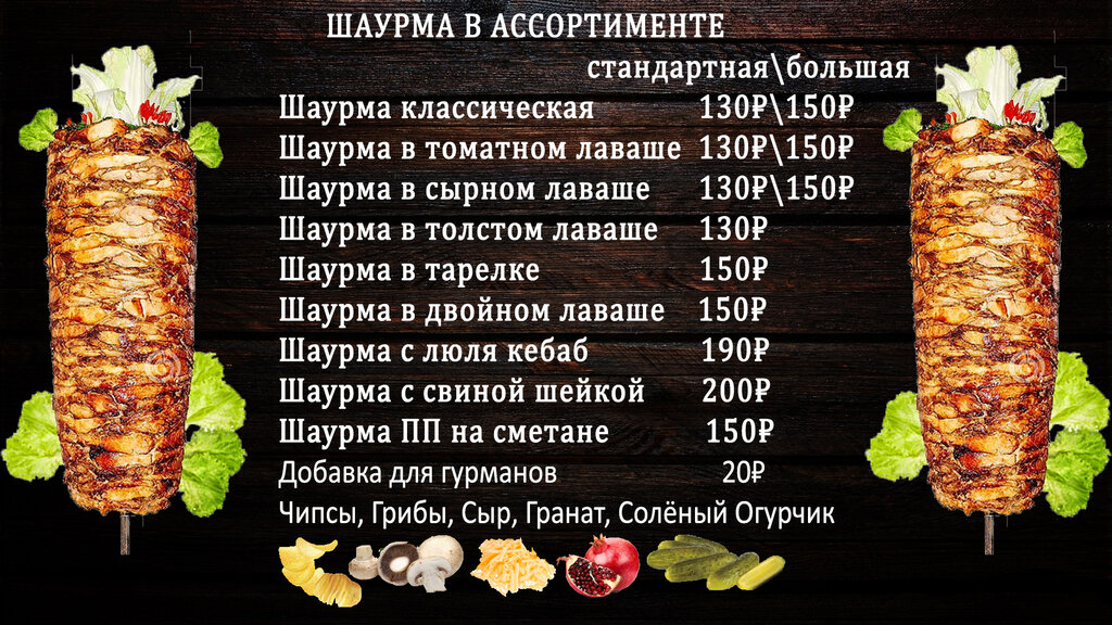 предпочтений. Некоторые ценители шаурмы не признают кроме мяса и соуса никаких