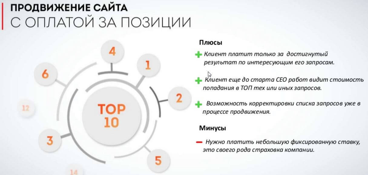 Наиболее эффективным решением является именно комплексное продвижение, при заказе которого удается не только получить места в ТОПе выдачи по указанным запросам, но и обрести:
