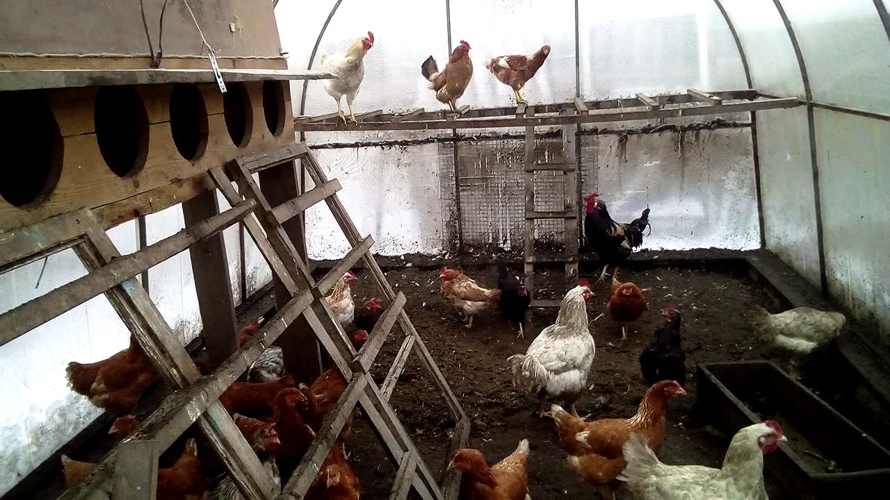 Применяя теплицу для зимнего содержания кур на даче в домашних условиях, решается сразу несколько проблем. Во-первых, экономия средств на возведение зимнего курятника и экономия пространства. А, во-вторых, после завершения зимнего сезона, после переселения птиц в летнее помещение, дачнику остается удобренная земля для того, чтобы хорошо росли растения, которые в ней будут посажены.