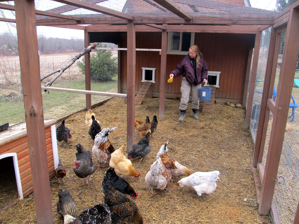 Конечно, вы тратите немного больше на корм, поступая таким образом, но наша задача — заботиться о наших животных наилучшим образом, а здоровая курица стоит денег на дополнительный корм, особенно если вы хотите яйца всю зиму.
