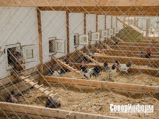 Но делать это следует либо в небольшой мороз, либо во время оттепели. Территория для выгула должна быть ограждена забором и также должен присутствовать навес над ней. Еще понадобится подстилка из того же материала, что и в курятнике. На заборе следует разместить пучки сена, чтобы птицы могли их клевать, а поверх подстилки высыпается зерно. Естественно, что такая прогулка должна быть недолгой, максимум 2 часа. Кстати, помещение курятника также должно быть оборудовано вытяжными трубами, чтобы свежий воздух поступал и туда.