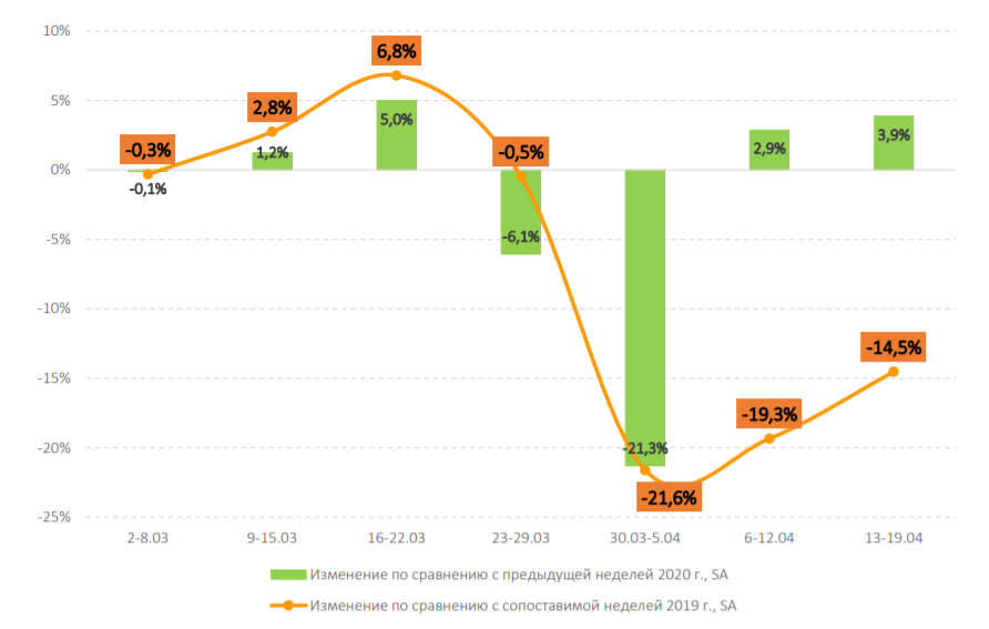 Рисунок 4 Процентное изменение темпов роста потребления товаров в ответ на изменение мобильности