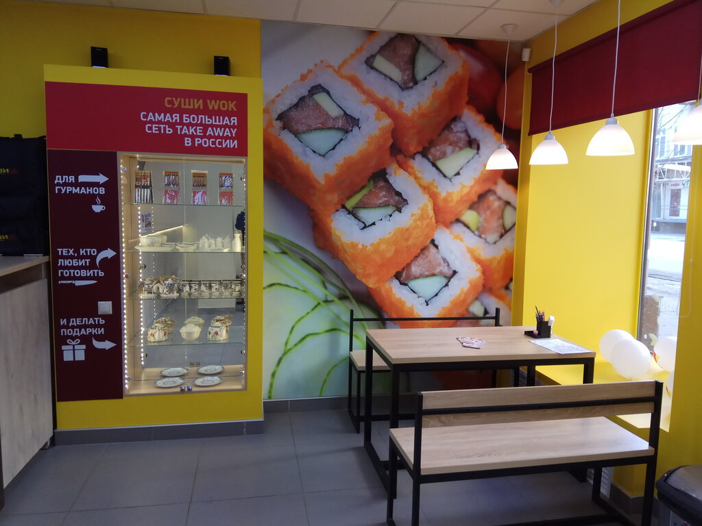 Во-первых, повлиять на восприятие клиентов. Сохранить основное позиционирование, скорректировав его в сторону большой, федеральной сети. К тому моменту под вывеской «Суши Wok» работали уже четыре сотни магазинов по всей России и за ее пределами, но клиенты не знали о масштабах компании и воспринимали «Суши Wok» как локальные магазины у дома.