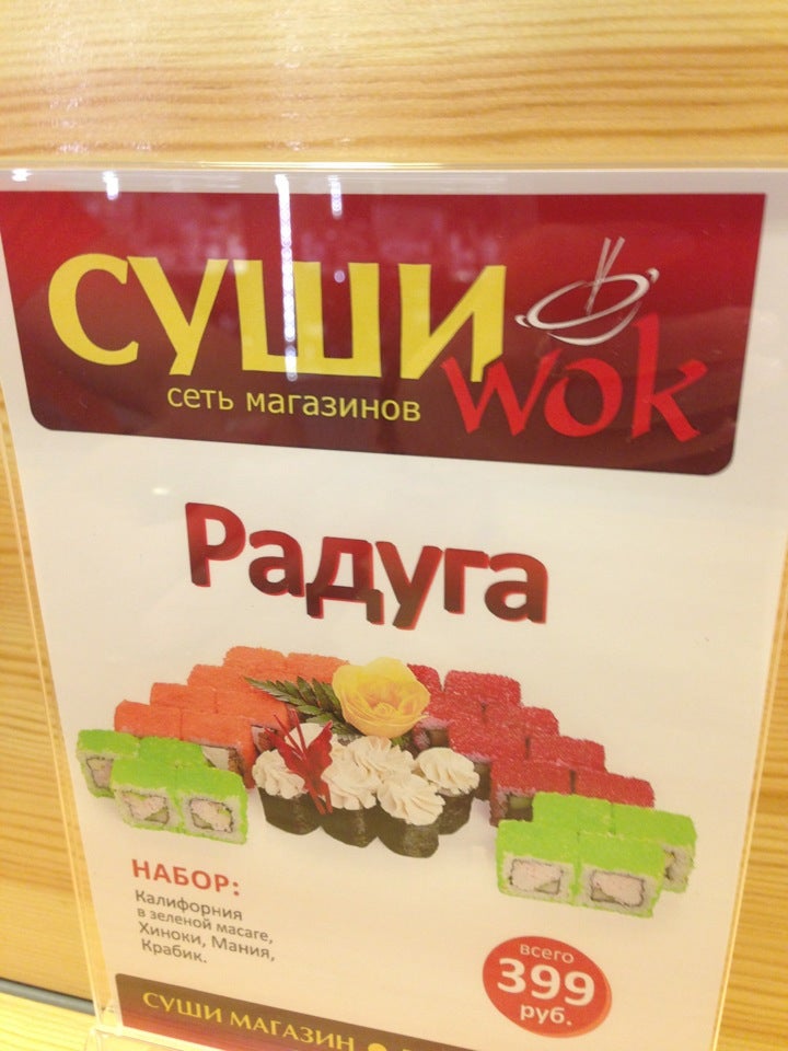 Работают в магазинах только выходцы из азии, таджики и т.п. Хорошие в основном ребята, очень простые, исполнительные и, главное, терпеливые. Управляющие магазином Суши Wok, кураторы территории, бренд-шефы сочиняющие суши, директора территорий, весь офис Суши Wok, гендиректора и учредители — люди, русские и не сильно обеспокоенные цивилизованным подходом к бизнесу, как таковые, и даже обычным человеческим отношением к рядовым сотрудникам.