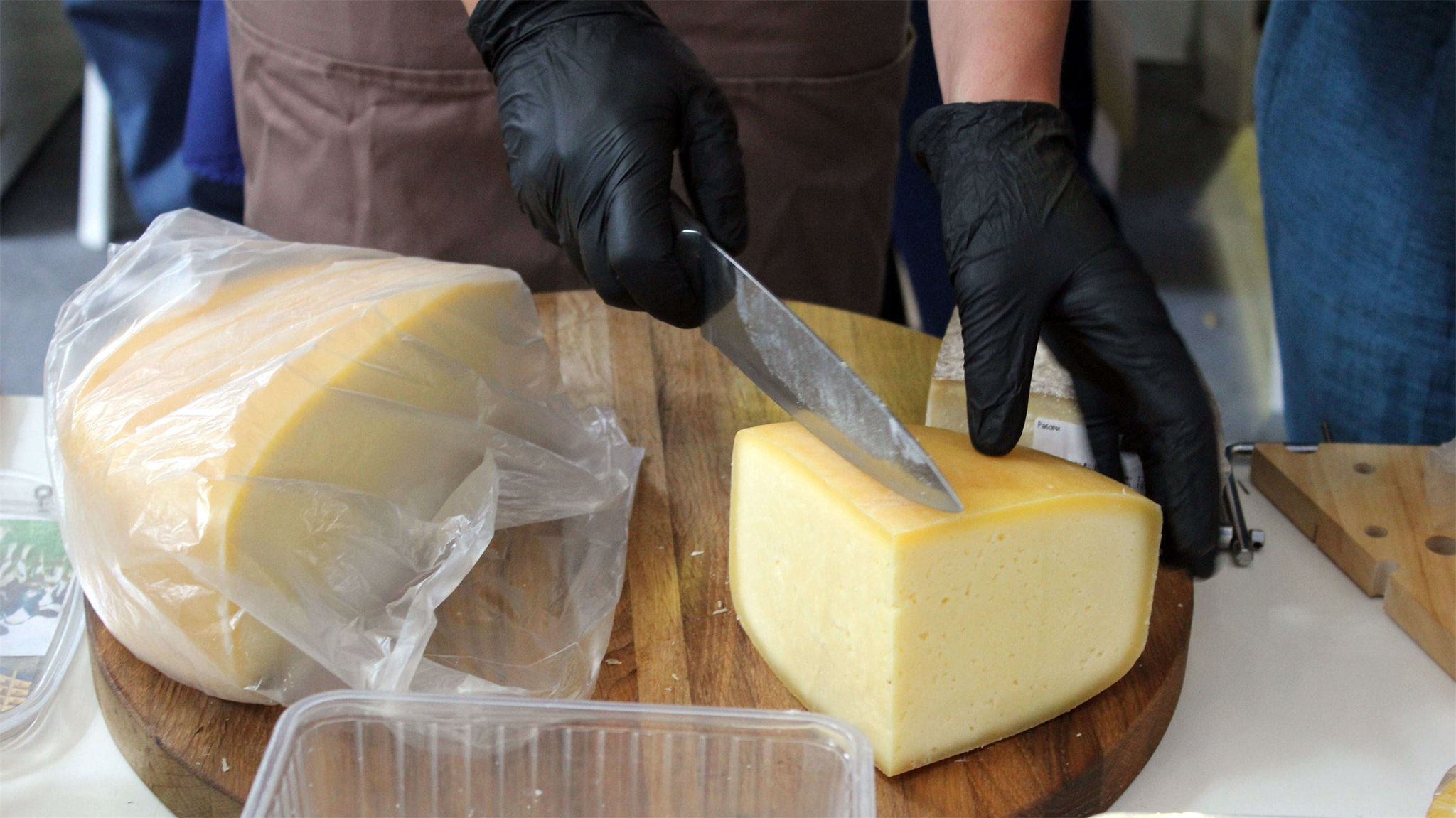 Структура сыра зернисто-чешуйчатая, ломкая, крошится при нарезке.