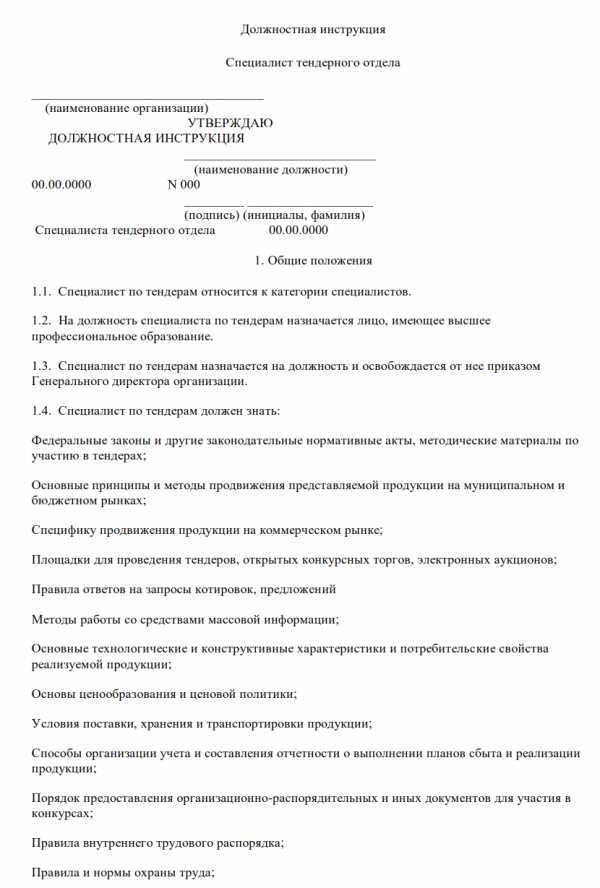 1.5. Специалист по тендерам в своей деятельности руководствуется настоящей Должностной Инструкцией.