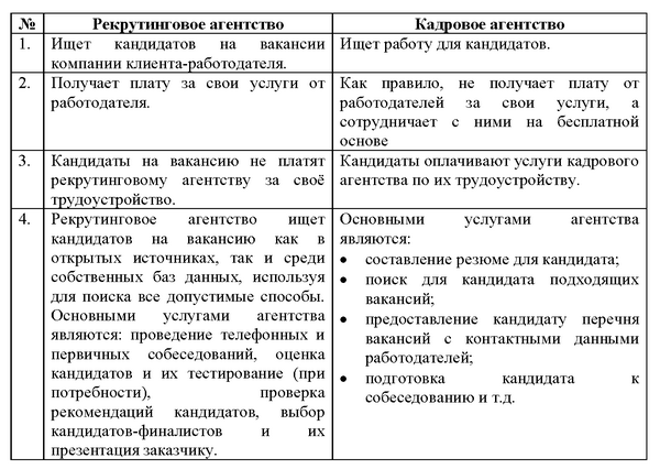 ….Исторически сложилось так, что фирмы взимают с кандидатов плату за помощь в поиске работы. На сегодняшнем рынке очень мало агентств по трудоустройству. Большинство гонораров кадрового агентства оплачивает работодатель.